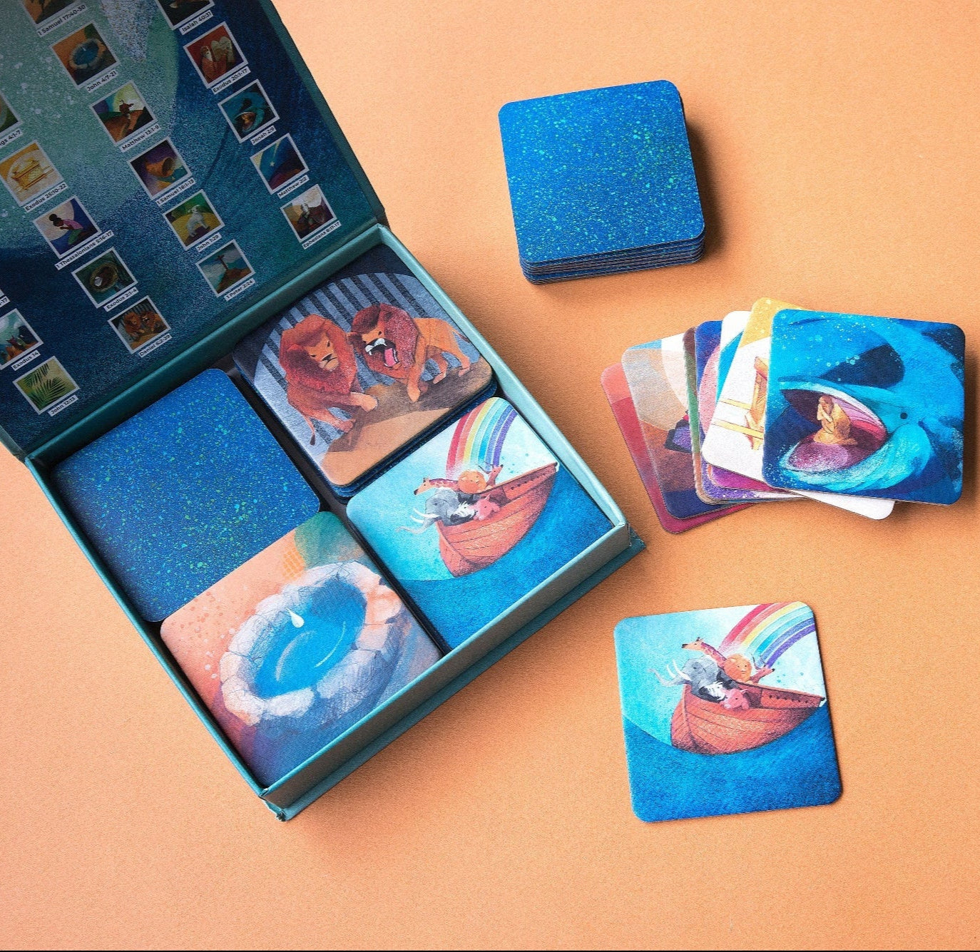 Dit christelijke memoryspel is ontworpen om kinderen en families te betrekken bij de Schrift terwijl ze genieten van een klassiek memoryspel.